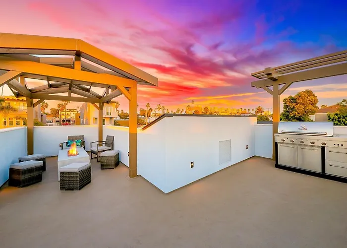 La villa New Tremont Modern Beach Condo Brand New 1-Story Condo Near Beach W/Shared Rooftop Terrace cuenta con una cocina completa, lavaplatos y también horno. Los huéspedes pueden cenar en el restaurante Venetos, situado al lado de la villa. La estación de autobuses Coast Highway & Topeka Street está a 750 metros de la propiedad, lo que permite a los huéspedes descubrir fácilmente Oceanside.
